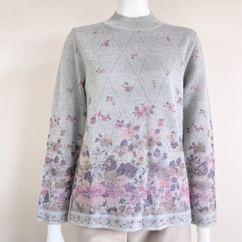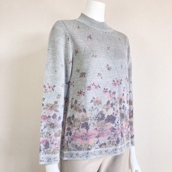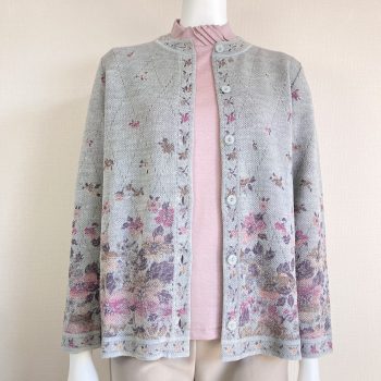 ライトグレーにピンクとパープルのお花柄が映えて、