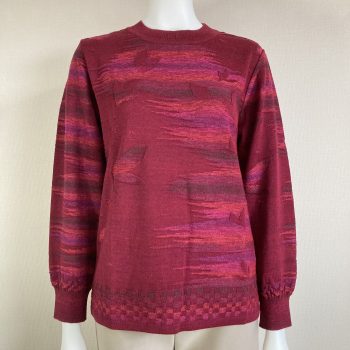赤系ですが、渋めの赤(ワイン)なので派手すぎずご高齢の方でも着やすいです。