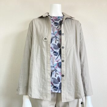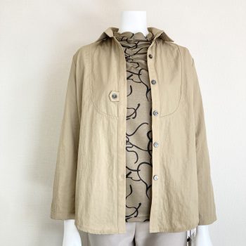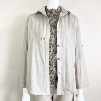 とっても合わせやすい、明るめのグレージュのジャケットです。