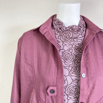 ・ピンクのジャケット×バラ柄のピンクカットソー
