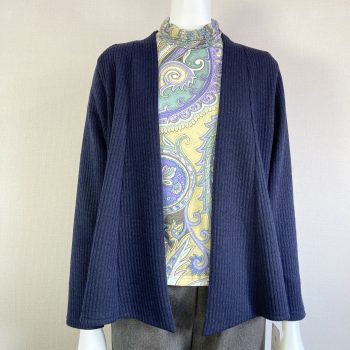 ブルー系のペイズリー柄なので、ネイビーのカーディガンもよく合います!
