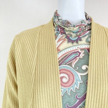 柄にイエローが使われているので、イエローのカーディガンもピッタリ!