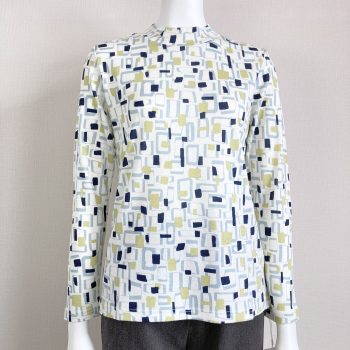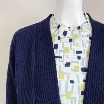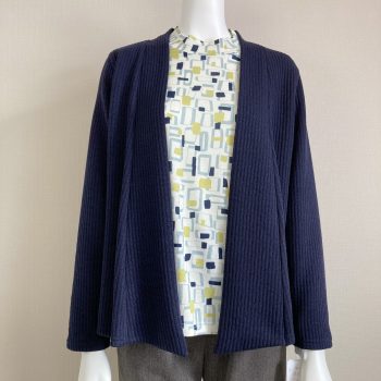 こちらも幾何学柄のネイビーのカットソーと、同色系のネイビーのカーディガンがピッタリ合っています(^^)