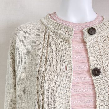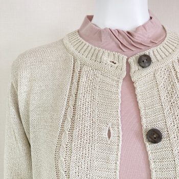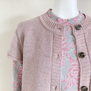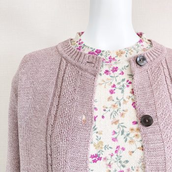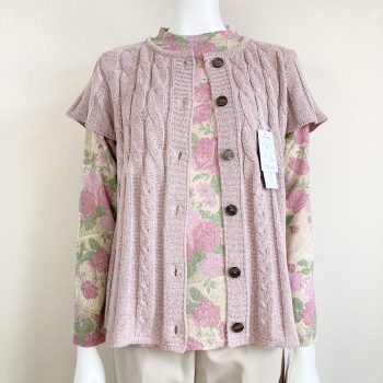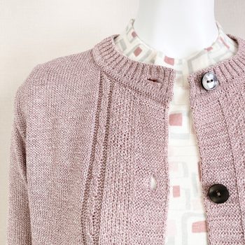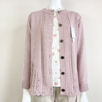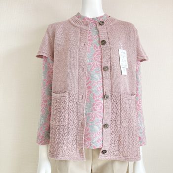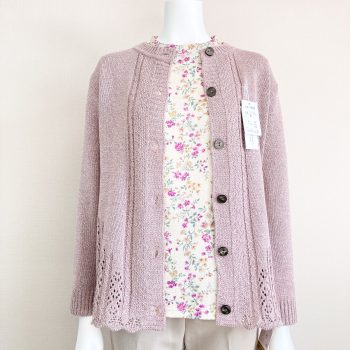 このカーディガンのシリーズのピンクは落ち着いたトーンの色合いなので、
