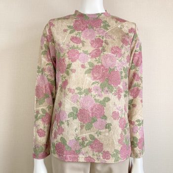 ピンクのベストには、シックなピンクのローズ柄カットソーがピッタリ!