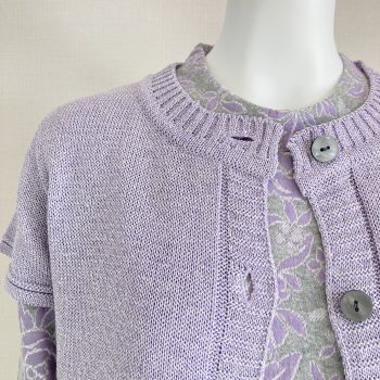 綺麗なラベンダーカラーのベストには、同色系のラベンダーお花柄カットソーがピッタリ!