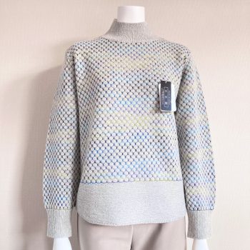 ピンクやブルー、ラベンダーがとっても春らしい色合いのセーターです。
