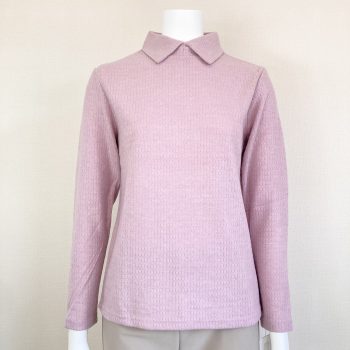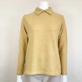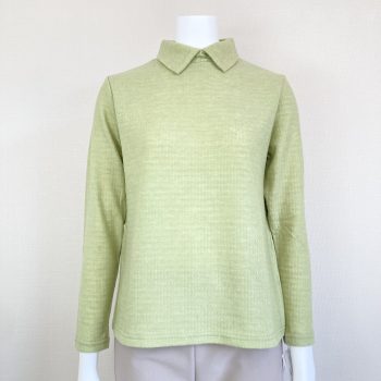 ⑤無地なので合わせやすい!春カラーの暖か素材チビ襟カットソー♪
