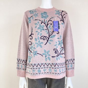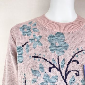 ⑥ほっこりかわいいお花柄♪春らしいピンクとグリーンのセーター